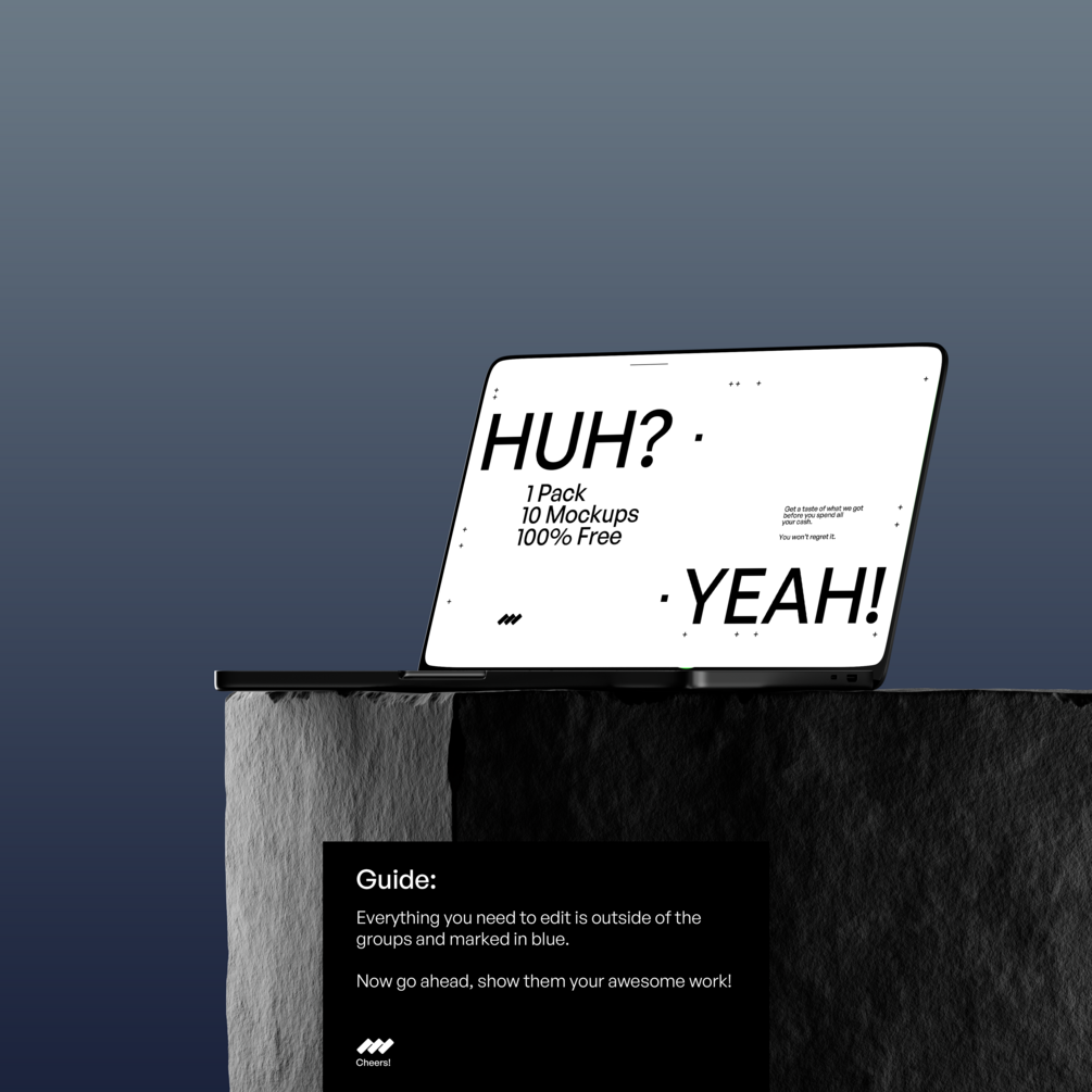This is THE free mock-up kit. Includes 10 different mockups with different objects, customizable backgrounds, automatic reflections, high quality shadows and accurate perspectives.